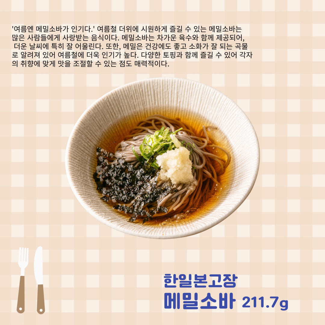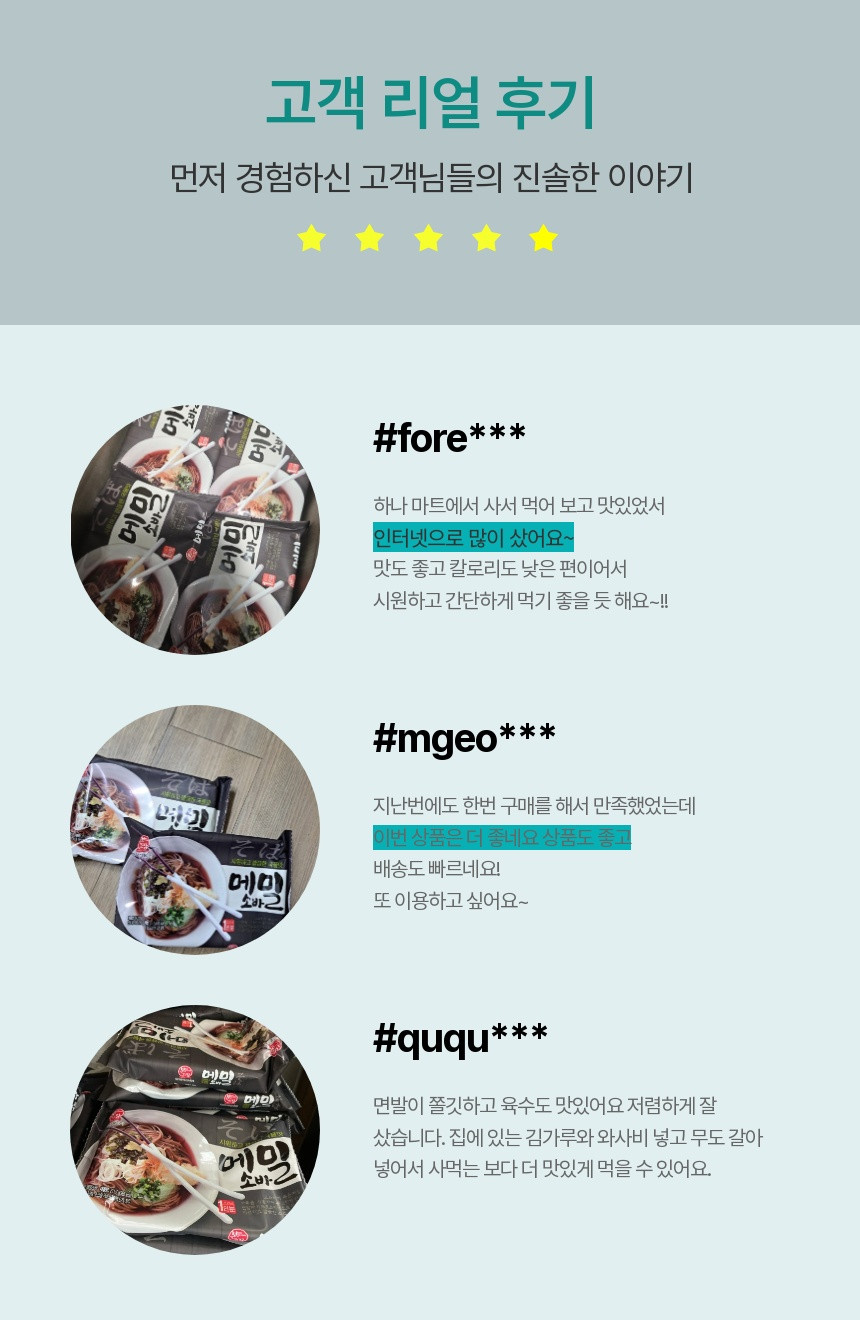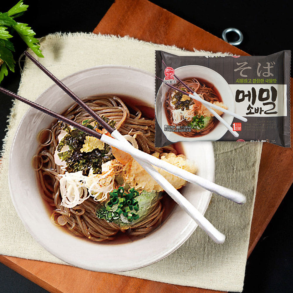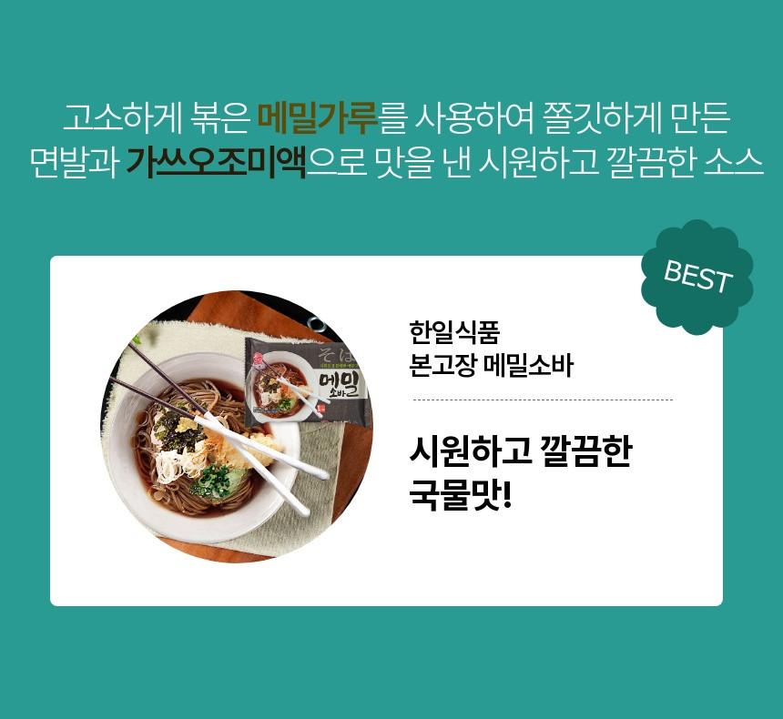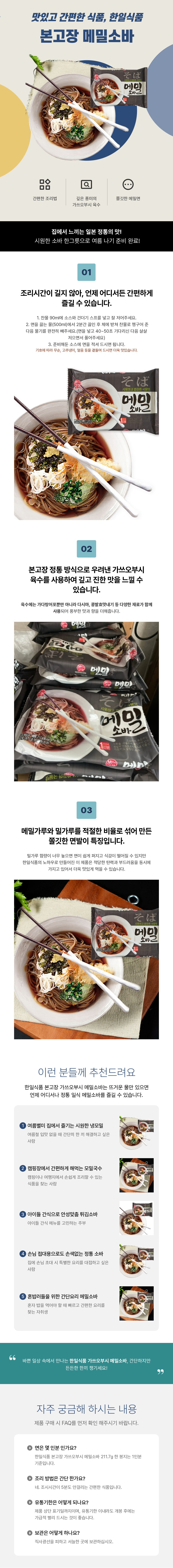 고소하게 볶은 메밀가루를 사용하여 쫄깃하게 만든 면발과 가쓰오조미액으로 맛을 낸 시원하고 깔끔한 소스 노브랜드 메밀 소바와 동일한 제품입니다.