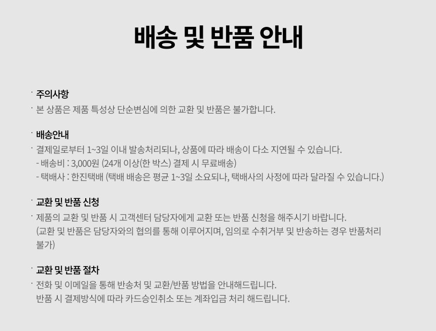 ※ 고객님의 마음이 바뀌어 교환, 반품을 하실 경우 상품반송 비용은 고객님께서 부담하셔야 합니다.